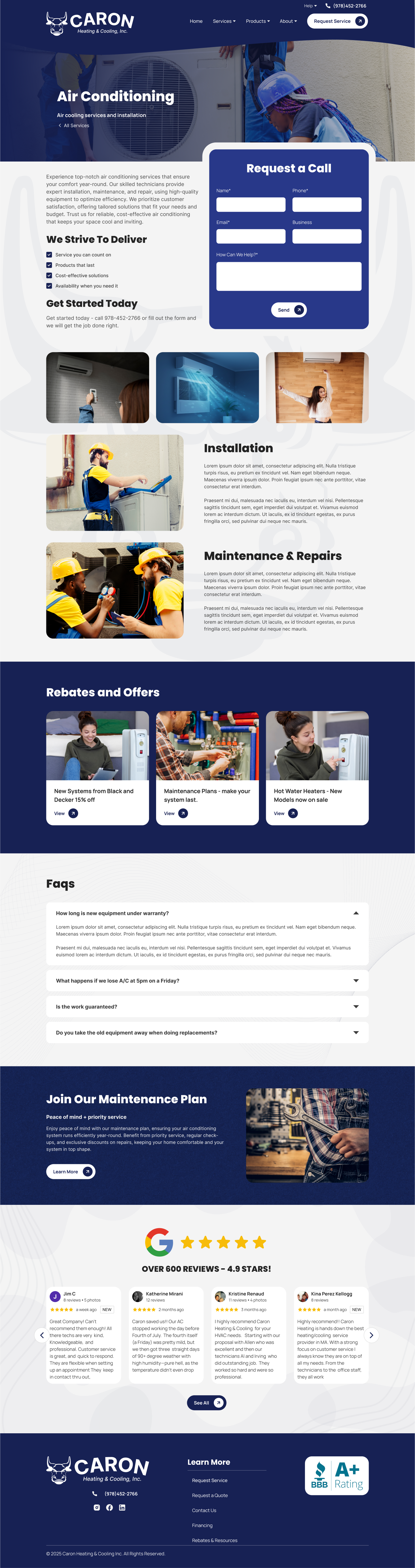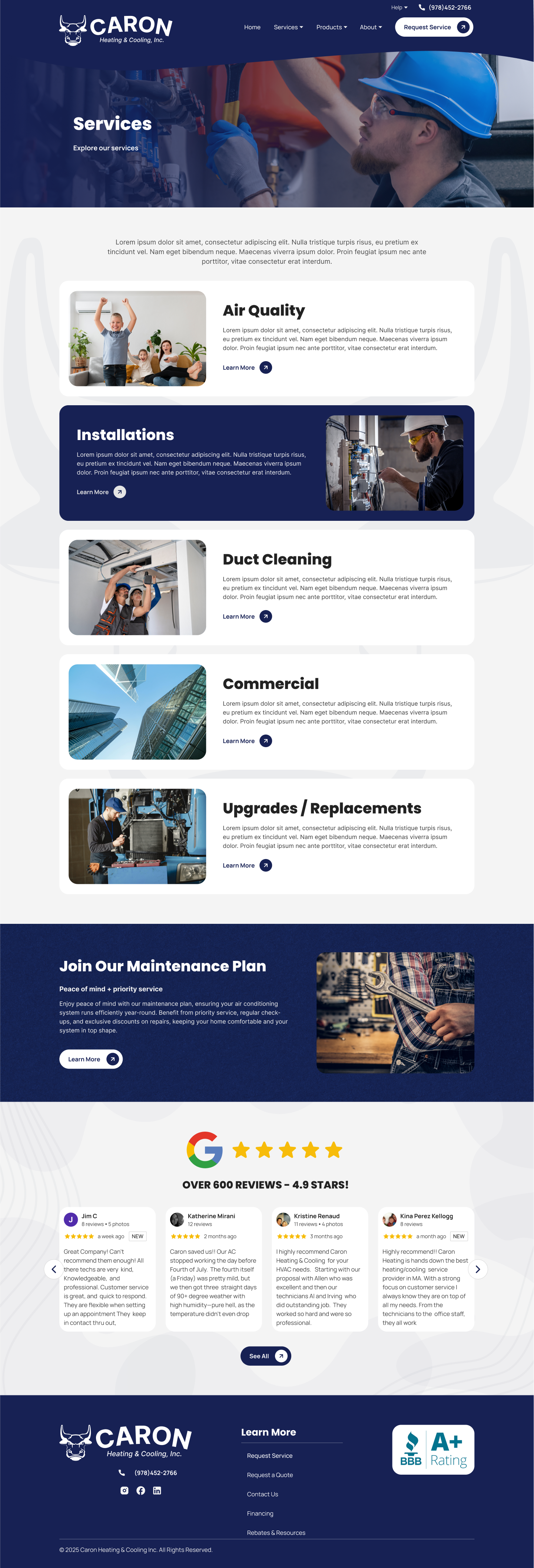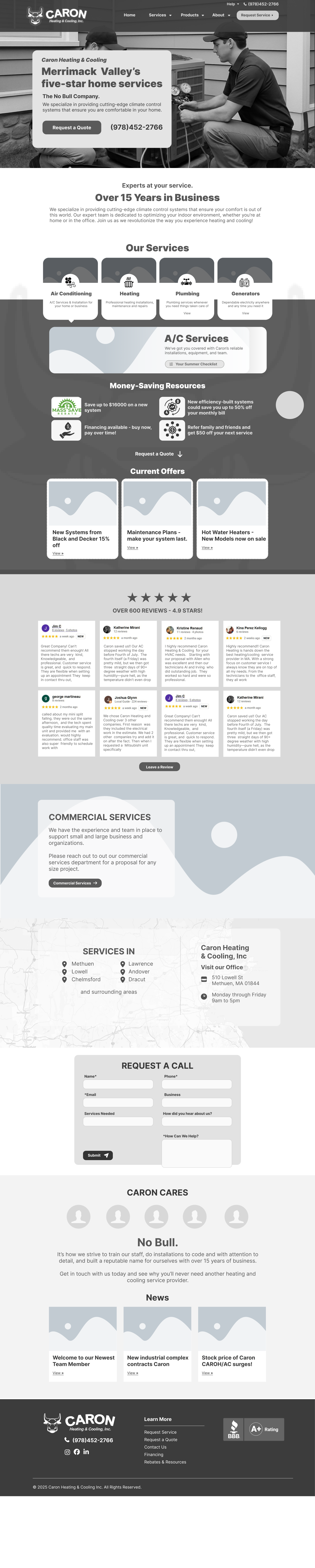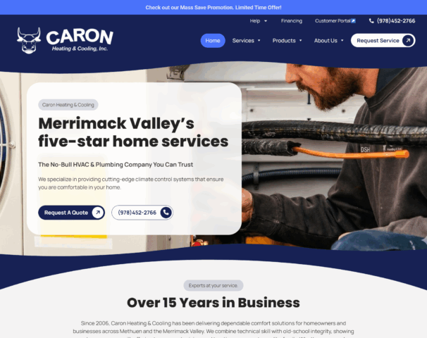 The result is a modern HVAC website that strengthens Caron’s online presence and supports their reputation for reliable service, responsive support, and customer-first care.