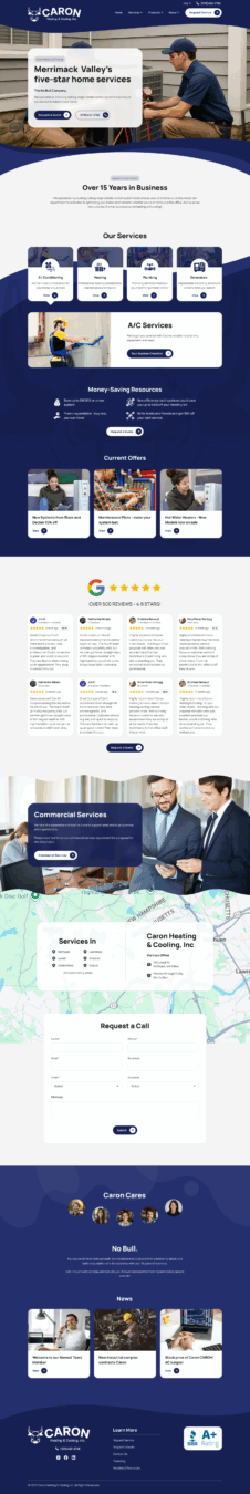 Founded in 2006, Caron Heating & Cooling is a trusted, family-owned HVAC company providing reliable heating and cooling services to homeowners in their local community. Their website needed to clearly communicate their services while reflecting their commitment to dependable workmanship and modern home comfort solutions.
