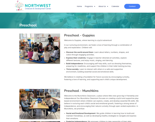 Working closely with their team, we built a clean, user-friendly website that highlights their programs, values, and enrollment process. The result is a welcoming, mobile-friendly site that helps families quickly understand what sets Northwest apart—while giving the staff control to update content as needed.