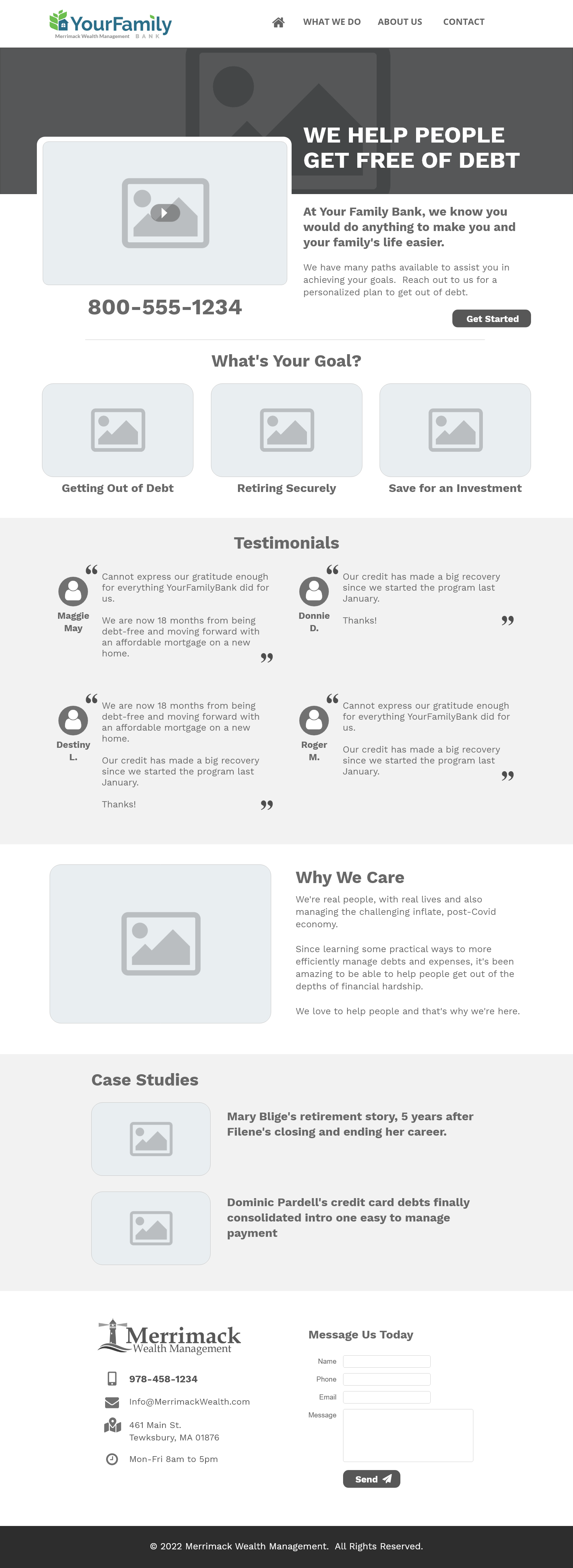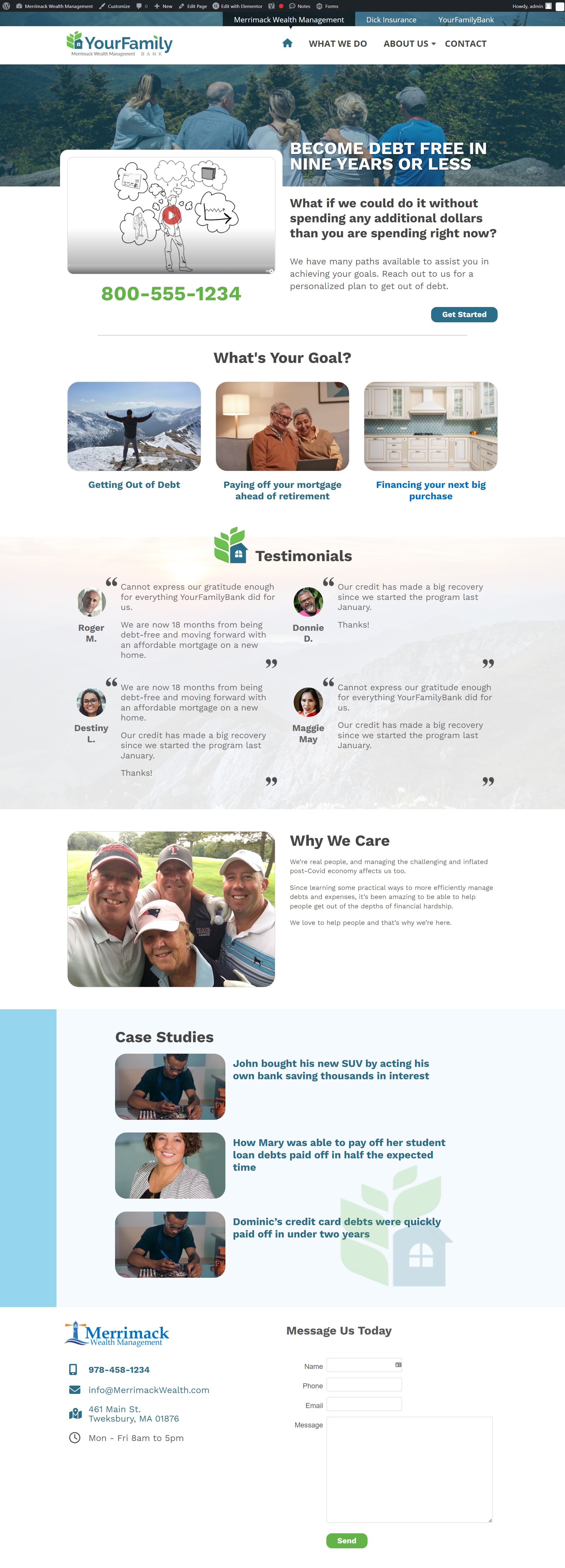 Merrimack Wealth Management set out to create a new branch for their digital landscape with YourFamilyBankNE.com. The site focuses on innovative ways to help users save for a major investment, pay off debts, or otherwise manage finances.